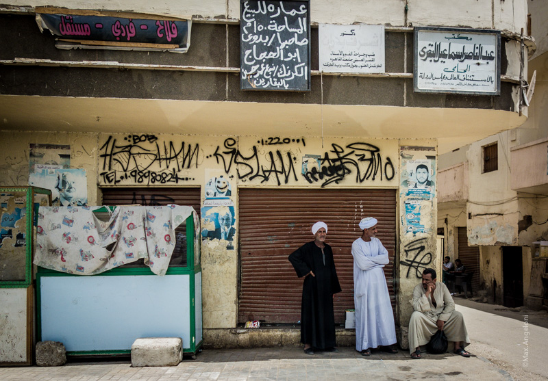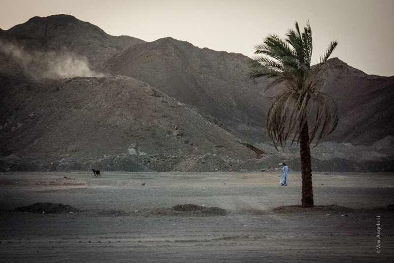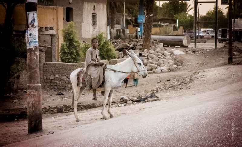 The trip. To get to Luxor from Marsa Alam we crossed the Egyptian Eastern desert for about 230 Km. Once on the shores of the Nile near Edfu we headed up the lower Nubia to get to Luxor after about 130Km. During the six hours of the travel we could make only one stop, in the only existing refreshment point, located in the desert and run by Bedouin tribes. During our way back, we had a short stop in the periphery of An Nazul, a small rural town located on the border between the desert and the fertile area. The average temperature we had in Luxor during the middle of the day was near 50° C. Being at the Tropic of Cancer,close to the June solstice, and given the very high temperatures, there was no hope to have good lighting conditions during the day. This is why I gave to my files a particular treatment I developed for this set of pictures. The target was to maintain a consistent visual and narrative style regardless the hour of the day or the place where the pictures were taken.