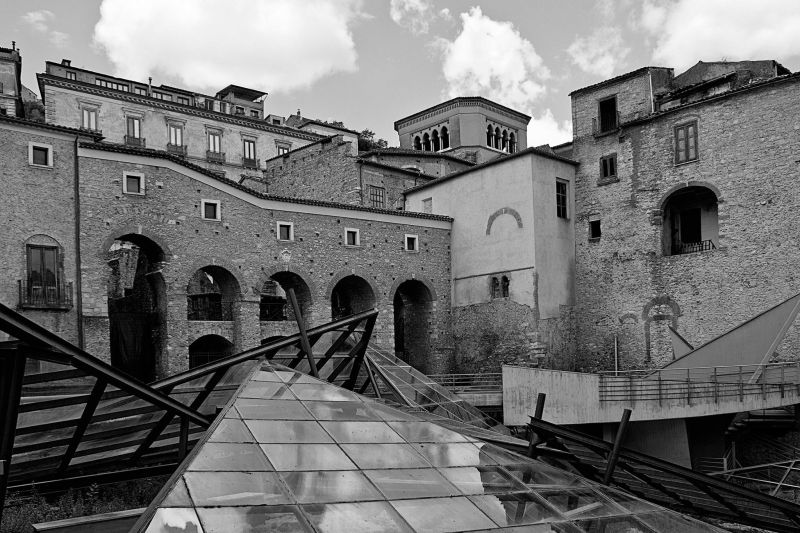 Niente di tutto ciò, questa fotografia è divisa in due. Una parte alta, una parte bassa. Potrebbe essere uno specchio, forse lo è. Uno specchio che riflette il futuro, non il presente. “Ci sono terrazze dalle quali mi lascio cadere, finché resto insanguinato”, scrive Borges altrove. Ecco è una fotografia di architettura ma è altro e altro ancora, mi perdo nel labirinto, e ritrovo l'essenza della fotografia: l'ambiguità.