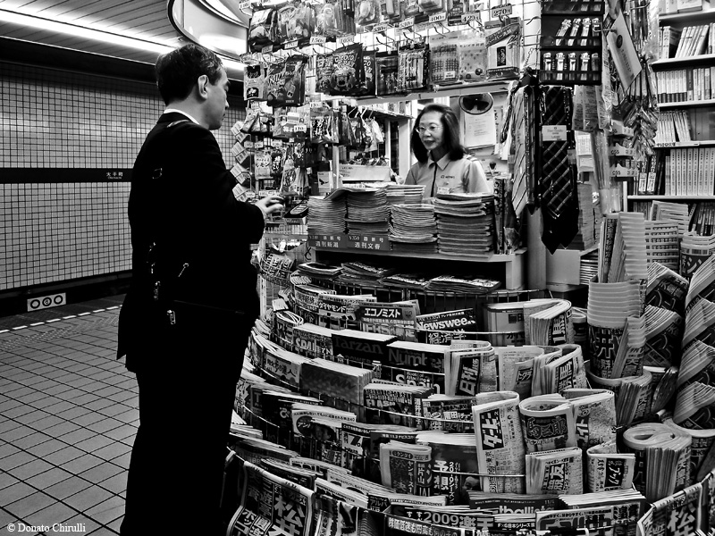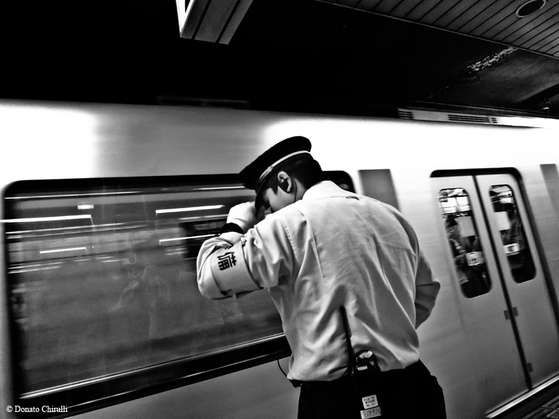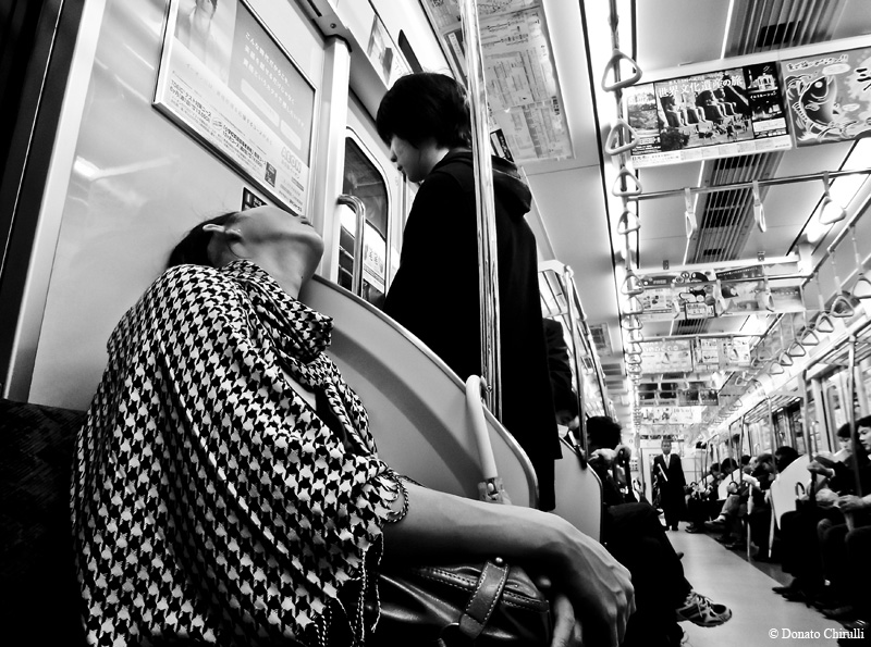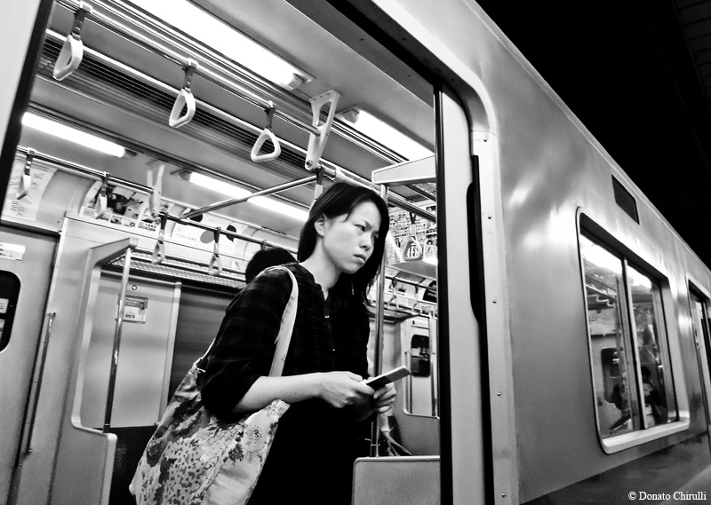 In questo genere di fotografia (quella nelle metropolitane), che è più "street" della normale street.... la discrezione è fondamentale. Sia per cogliere i soggetti nella maniera più spontanea possibile, sia per evitare di andare incontro a qualche spiacevole reazione. Tokyo, è comunque una città molto tranquilla e quindi, di pericoli, in genere non se ne corrono. Ma, qualcuno può sempre essere infastidito da un comportamento troppo invadente.