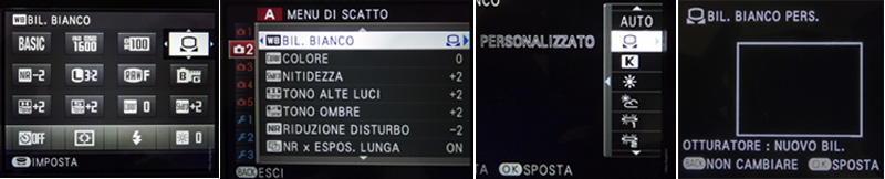Regolazione che riguarderà sia l’immediata impostazione della macchina fotografica sia l’acquisizione di uno scatto da utilizzare come punto di riferimento in fase di post produzione. La personalizzazione del bianco sulla X-E1 (così come la X-Pro1) avviene tramite una procedura rapida e intuitiva.
