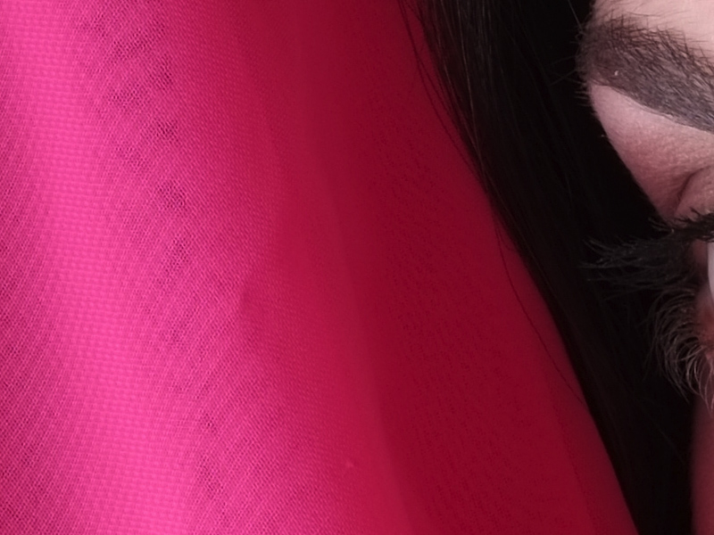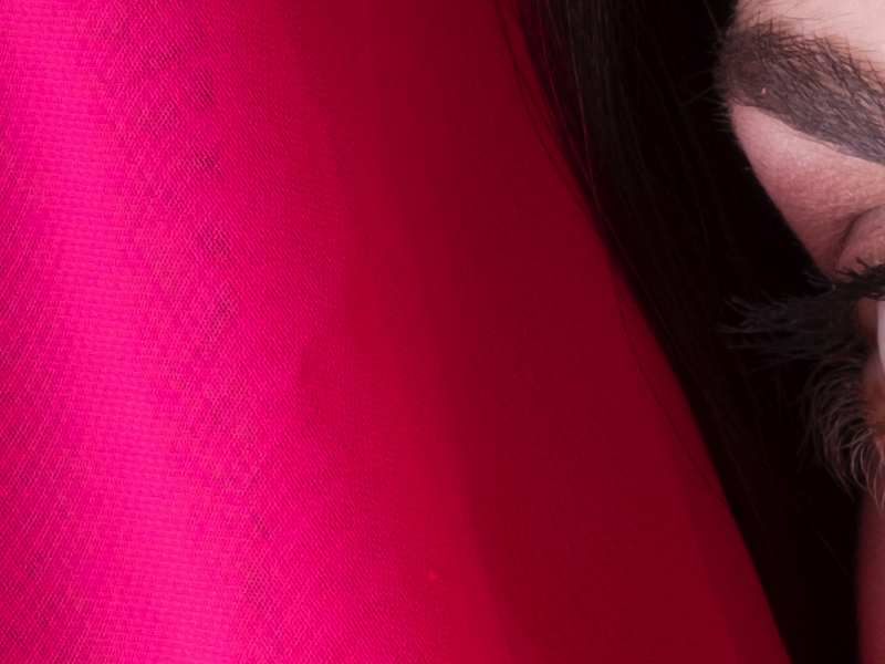 Il file in alto è un JPG OOC realizzato con il 60 Macro. Nonostante la presenza della fitta trama del tessuto, e il passaggio dal fuoco al fuori fuoco,