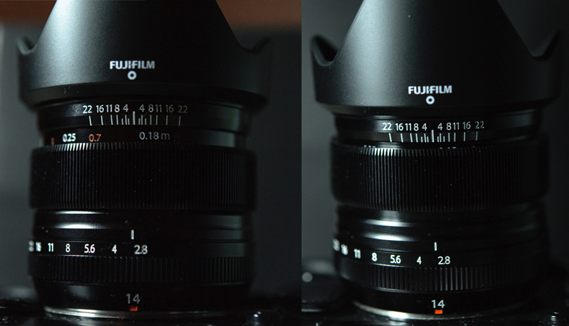 La cosa strana è che è stata adottata forse sull’ottica che meno avrebbe bisogno di tali accorgimenti poiché la distanza, tra la minima distanza di messa a fuoco e l’infinito, è di poco più di 3 metri. Ora… dalle foto delle demo uscite sulla rete dei futuri obiettivi, previsti tra il 2013 e 2014, non è mai stata “duplicata” questa soluzione. Soluzione che invece sarebbe molto comoda da adottare con il 23 (equivalente angolo di campo del 35mm), focale principe del reportage.