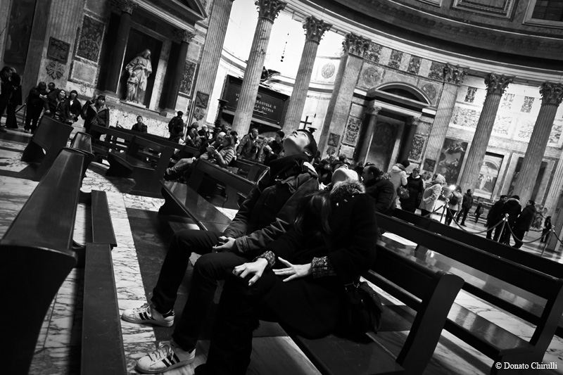 Dopo questo reportage in B/N effettuato per le vie di Roma, inserisco qualche immagine esemplificativa di alcune caratteristiche e particolarità legate all'uso del 14 mm. L'immagine sottostante, ad esempio, è la dimostrazione di un utilizzo "creativo" delle distorsioni prospettiche che possono essere introdotte da una focale di questo genere.