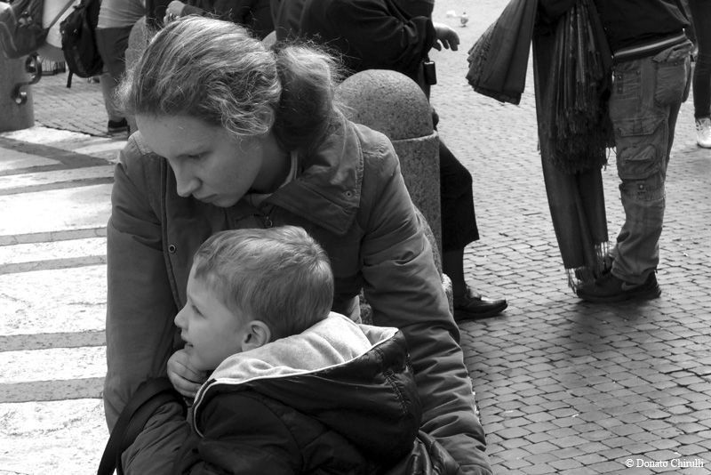Vorremmo approfittare dell'occasione per chiarire meglio il concetto di "Street Photography", dato che ci capita purtroppo di vedere quotidianamente (specie sui social networks) quanto questo concetto sia male interpretato. Non basta fotografare.... in mezzo alla strada, non basta.... buttare lì qualche persona o silhoutte insignificante, disposta in modo altrettanto insignificante sul fotogramma, non basta fare del b/n....cattivo o della post-produzione esasperata..... per dire di aver fatto Street e definirsi pomposamente "Street Photographers" o..... "Strephers". No, ci vuole molto, molto di più: bisogna avere un reale interesse per gli esseri umani, la capacità di entrare in sintonia con la loro vita quotidiana per le strade del mondo in cui vivono, bisogna esser capaci di vedere i loro gesti, le loro espressioni, ed attraverso questi interpretare i loro stati d'animo. Gioia, tristezza, stupore, noia, curiosità , solitudine, paura...