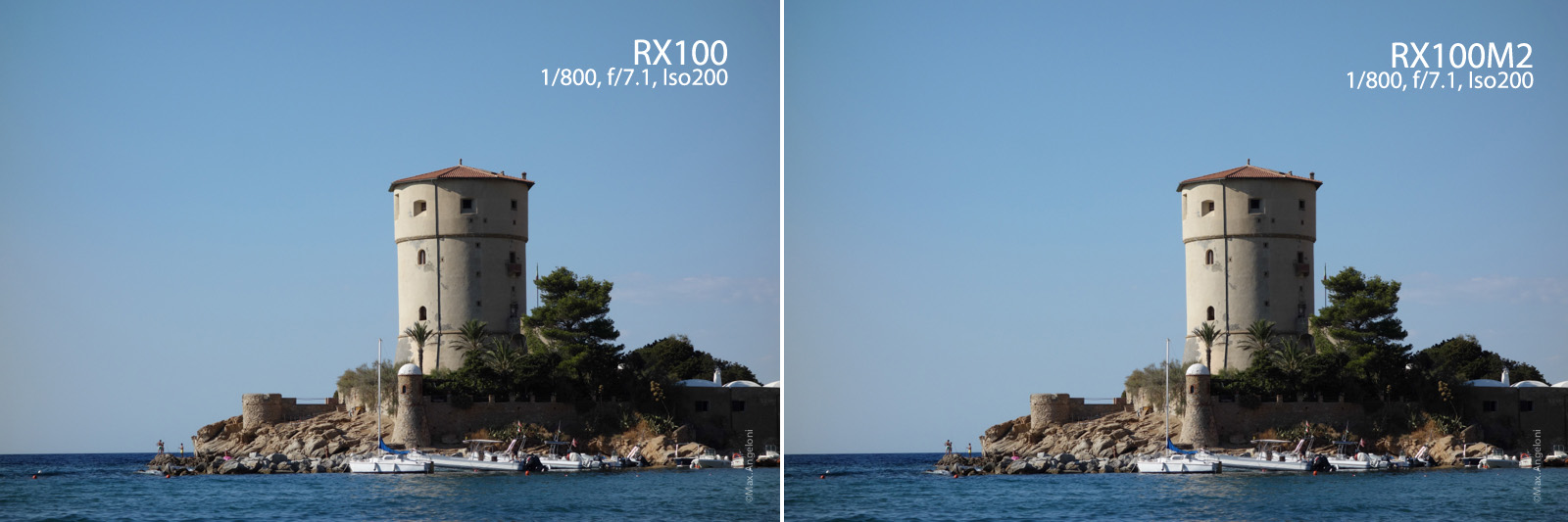 Oltre alla variazione del range degli iso (passato da 125-6400 a 160-12800) la nuova RX100M2 produce immagini differenti anche sotto l’aspetto cromatico a fronte di gamma dinamica sostanzialmente invariata. Fino agli 800 Iso è difficile scorgere differenze ma raggiunti i 1600 Iso il nuovo sensore allunga il passo ed è in grado di conservare una notevole pulizia del segnale fino ai 3200 Iso.