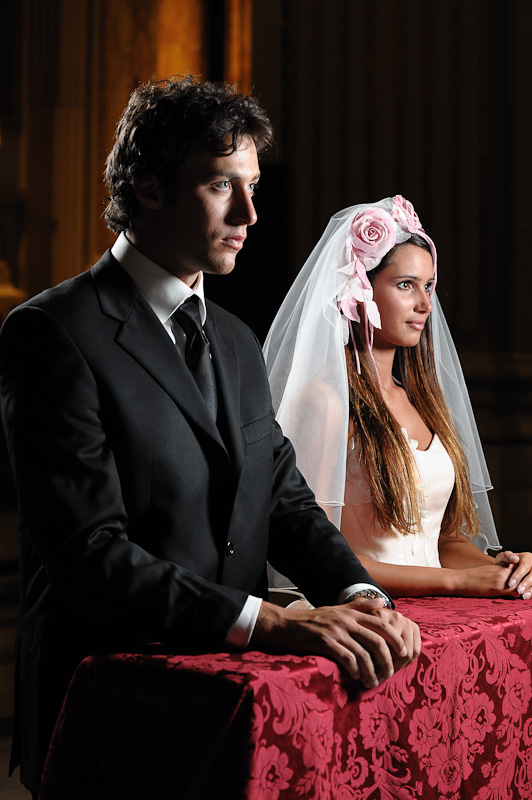 Finita la cerimonia le possibilità di muoversi con maggior libertà è evidente, così come cadono tutte le limitazioni che ci impedivano si posizionare più fonti luminose. Inoltre la stanchezza è ancora lontana e...salvo rare eccezioni... il trucco è intatto e gli abiti in ordine. In 5-10 minuti si possono fare gli scatti che daranno una seconda "impronta" al servizio fotografico.