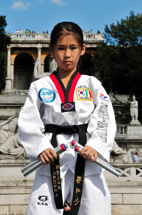 Letteralmente vuol dire Arte dei calci e dei pugni in volo. Di coreana ed è arrivata in Italia sull'onda dei primi film trasmessi in Italia in cui le arti marziali erano le vere protagonista. Anche se meno conosciuto del Karate o del Kung fu, il Tae Kwon Do è l'unica arte marziale orientale con contatto pieno riconosciuta come sport olimpico. E proprio per le esigenze olimpiche le tecniche di combattimento hanno subito una regolamentazione molto precisa alfine di esaltare la spettacolarità di tale disciplina.