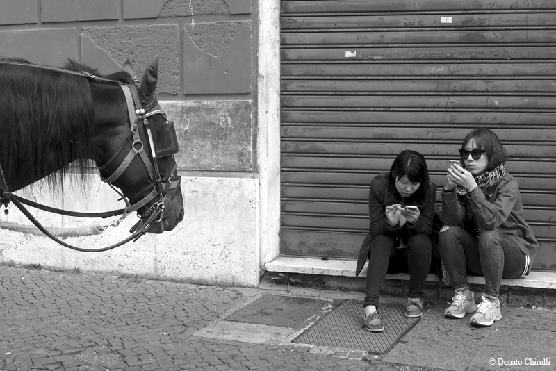 Vorremmo approfittare dell'occasione per chiarire meglio il concetto di "Street Photography", dato che ci capita purtroppo di vedere quotidianamente (specie sui social networks) quanto questo concetto sia male interpretato. Non basta fotografare.... in mezzo alla strada, non basta.... buttare lì qualche persona o silhoutte insignificante, disposta in modo altrettanto insignificante sul fotogramma, non basta fare del b/n....cattivo o della post-produzione esasperata..... per dire di aver fatto Street e definirsi pomposamente "Street Photographers" o..... "Strephers". No, ci vuole molto, molto di più: bisogna avere un reale interesse per gli esseri umani, la capacità di entrare in sintonia con la loro vita quotidiana per le strade del mondo in cui vivono, bisogna esser capaci di vedere i loro gesti, le loro espressioni, ed attraverso questi interpretare i loro stati d'animo. Gioia, tristezza, stupore, noia, curiosità , solitudine, paura...