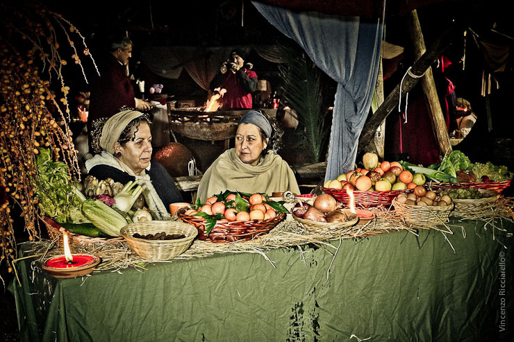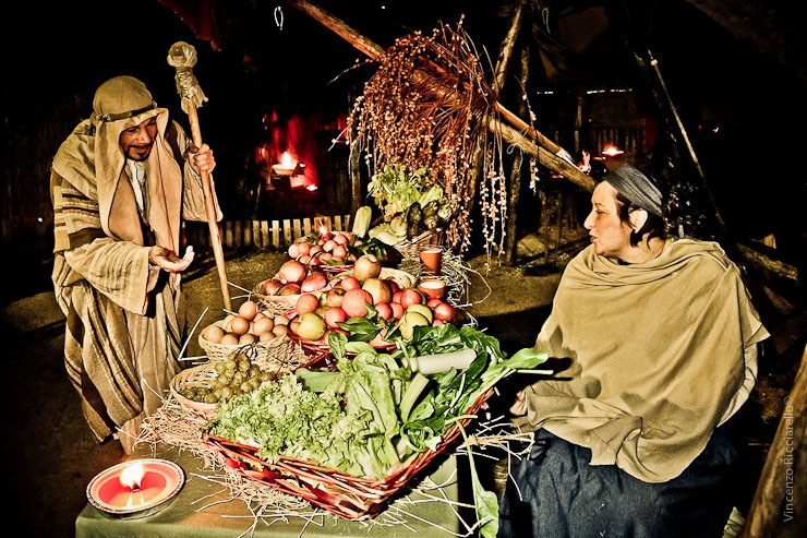 Sembra di fare un salto nel passato, anche noi vestiti delle nostre tuniche saremo parte integrante del presepio e potremo interagire con gli oltre quaranta figuranti presenti. Oltre che delle tuniche, gli organizzatori riempiranno le nostre tasche di tintinnanti sesterzi con i quali acquistare i prodotti che il mercato offrirà...sembrerà di tornare indietro nel tempo di 2000 anni!!